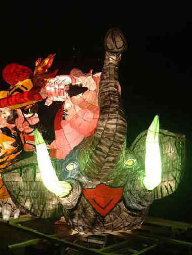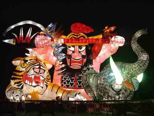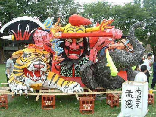 ![]() | ――― | 南蛮王 孟獲 | 仕:行灯行列までに完成に至らなかったことが非常に残念な行灯の一つでした。しかし、賞などなくても、学プロをそっちのけにしても完成させようとしたその心意気に非常に感じるものがありました。その心意気、きっと来年はやってくれるでしょう。 ナ:象が非常に精巧にできている。この針金の技術はすごい。 芋:このクラスも時間がもっとあれば、間違いなく金賞候補でした。ほんとに残念。 め:蛍光塗料は夜光ったとき想像以上の効果がありました。象の肌の質感もうまく表現できていると思います 遊:ねぶたでは多いですが、こういう炎(?)って行灯であんまり見ないので、印象に残りましたね。 | |