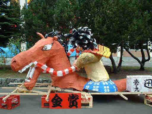 ![]() | 54th一年金賞 | 義経、流星が如く | 夜 | 仕:一年生にして、ここまで馬を作り上げたということに、非常に将来性を感じました。見せ方などといった行灯のテクニックを憶えていけば、この先どれだけのものを作り上げてくれるのか非常に楽しみです。この金賞に慢心せず、さらに上を目指していってほしいです。 ナ:行灯を持った時、顔が観客の方を向いていた。ちょっとした工夫だが好印象を受けた。 芋:顔の作りは1年のレベルを超えてます。来年以降に期待。 め:空間がかなり余っていますが色塗りが比較的綺麗でした。人の顔が見にくいのが残念です 遊:馬の毛と、髪の毛が、塗りといい方向といい上手いです…… |